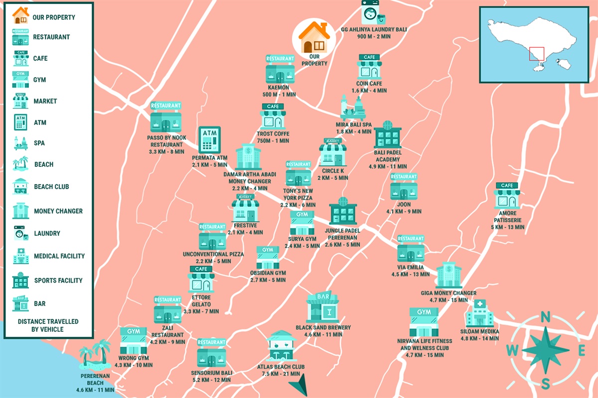 With easy access to ride apps like Grab and Gojek, getting around is simple. You’re just minutes from great coffee spots, local markets, yoga studios, and beach hangouts.